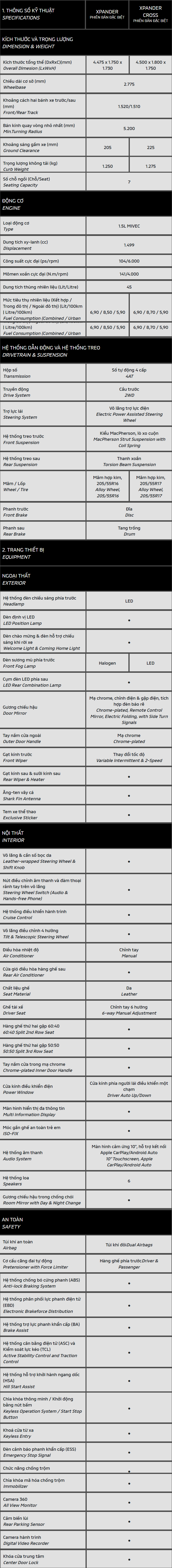 – 50% phí trước bạ và phiếu nhiêu liệu trị giá 12 triệu đồng (Xpander MT/AT & Xpander Cross Tiêu Chuẩn)